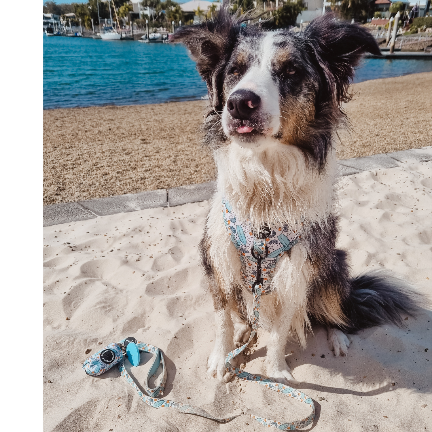 I have several full bundles of Hugo & co doggy accessories and surfs up is one of my favourites. I think it is one of Louie’s too. All of Hugo & co merchandise fits well and is comfortable for my fur baby. Not to mention they are just adorable. Love this design.